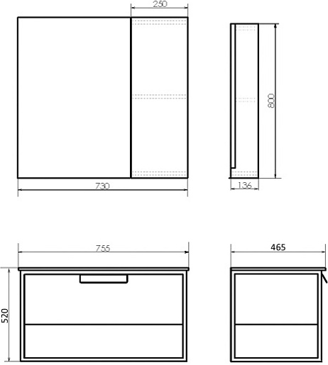- 1 ящик, открытая полка.