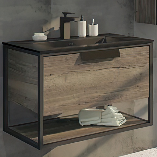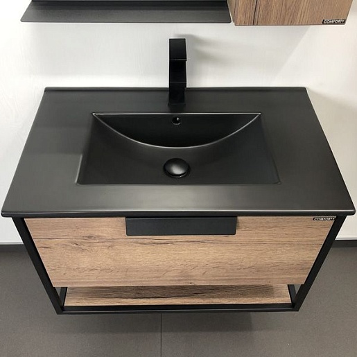 Подвесная тумба с раковиной Comforty Бонн 75 дуб темный - арт. 00-00001936CF.
