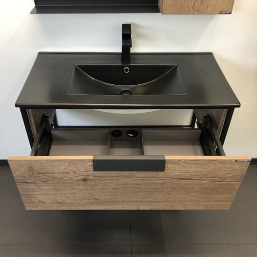 - Черная раковина Comforty 90E с отверстием для смесителя.