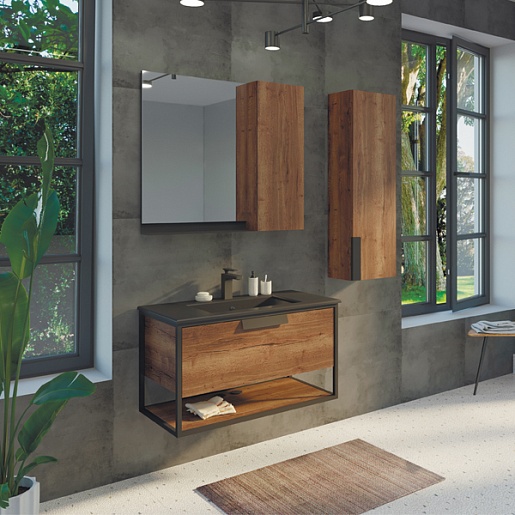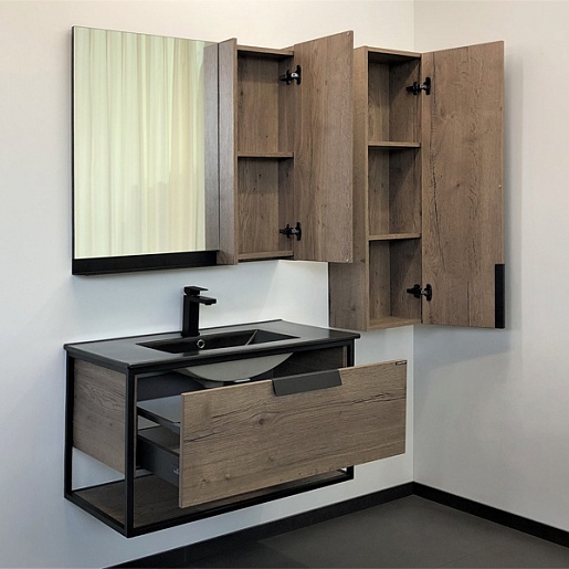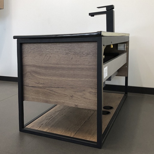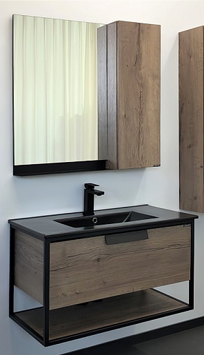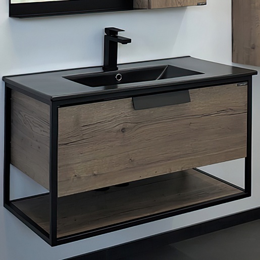 Подвесная тумба с черной раковиной Comforty Бонн 90 (Comforty) дуб темный - арт. 00-00001937CF.