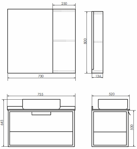 - Размер (ШxВxГ): 730x800x136 мм.