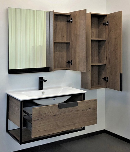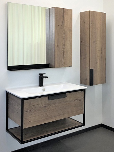 Зеркальный шкаф Comforty Кельн 90 дуб темный - арт. 00004147987CF.