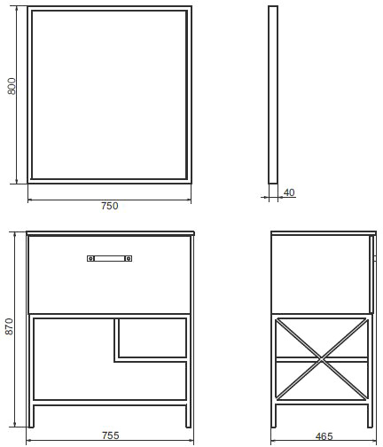 - Размер (ШxВxГ): 750x800x40 мм.
