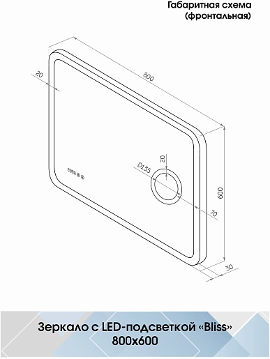 Зеркало Continent Bliss Led 800x600 - арт. ЗЛП450.