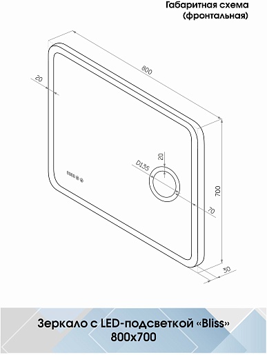 Зеркало Continent Bliss Led 800x700 - арт. ЗЛП334.