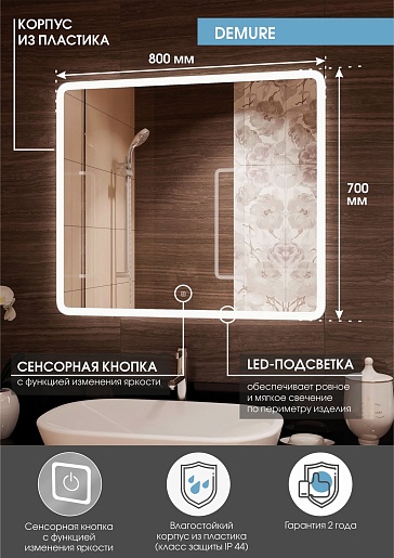 Зеркало Continent Demure Led 800x700 - арт. ЗЛП331.