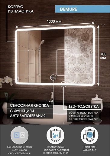 Зеркало Continent Demure Medium 1000x700 - арт. ЗЛП1134.