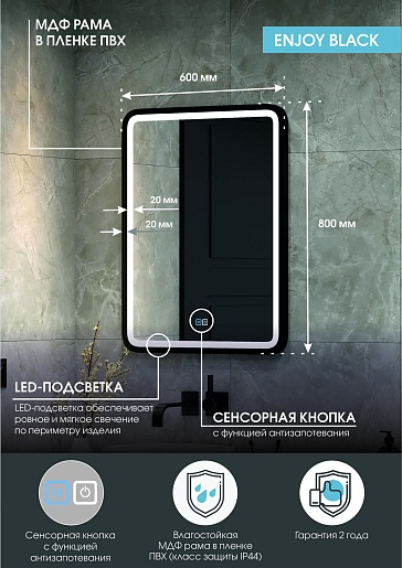 Зеркало Continent Enjoy Black Medium 600x800 - арт. ЗЛП842.