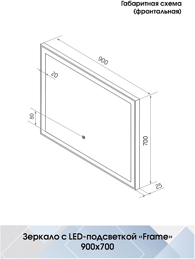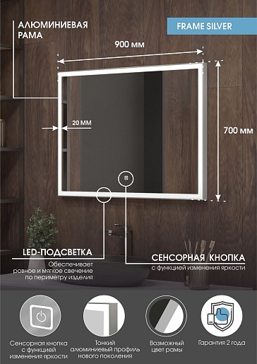 Continent Зеркало Frame Silver Led 900x700
