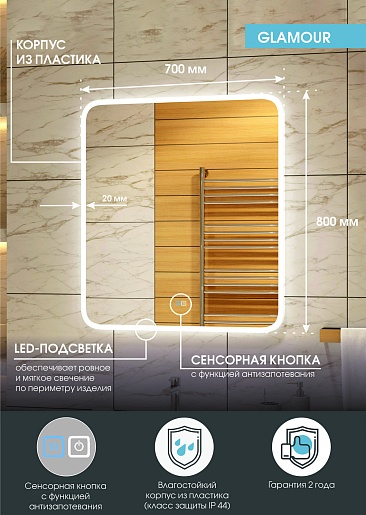 Зеркало Continent Glamour Medium 700x800 - арт. ЗЛП498.