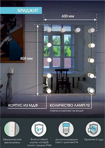 Зеркало гримерное Continent Бриджит 600x800 - арт. ЗГП03.