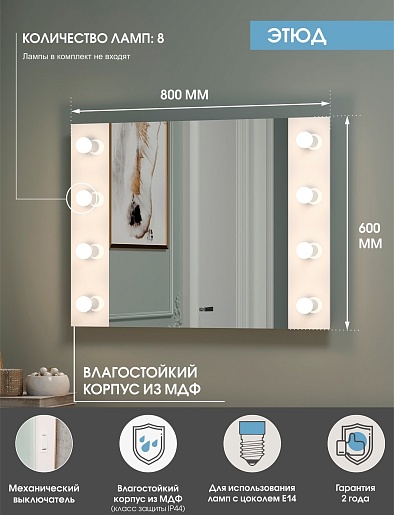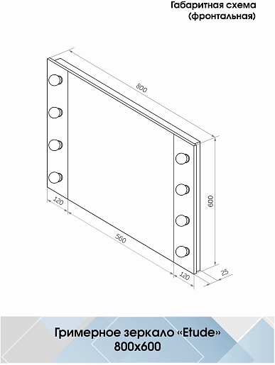 Зеркало гримерное Continent Этюд 800x600 - арт. ЗГП02.