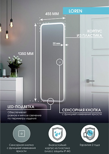 Continent Зеркало Loren Led 455x1350