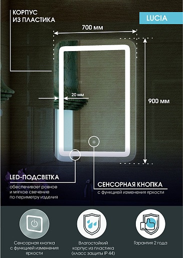 Continent Зеркало Lucia Led 700x900