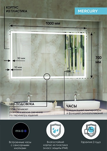 Зеркало Continent Mercury Luxe 1000x700 - арт. ЗЛП971.