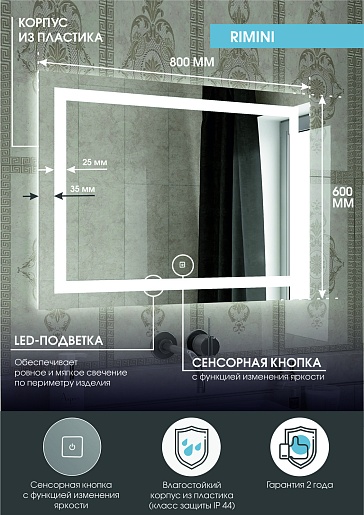 Зеркало Continent Rimini Led 800x600 - арт. ЗЛП65.