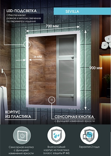 Зеркало Continent Sevilla Led 700x900 - арт. ЗЛП2239.