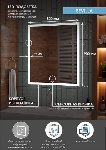 Зеркало Continent Sevilla Led 800x900 - арт. ЗЛП549.