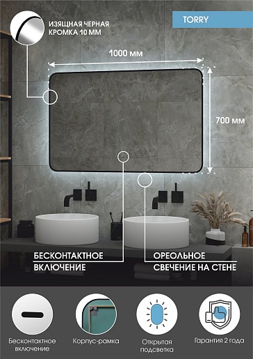 Зеркало Continent Torry Led 1000x700 - арт. ЗЛП1528.