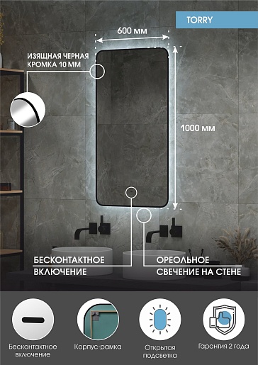 Зеркало Continent Torry Led 600x1000 - арт. ЗЛП1531.