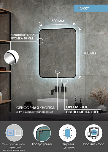 Зеркало Continent Torry Led 500x1000 - арт. ЗЛП2278.