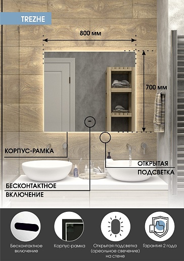 Зеркало Continent Trezhe Led 800x700 - арт. ЗЛП534.