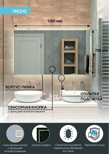 Continent Зеркало Trezhe Medium 1200x700