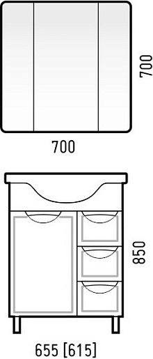 - Тумба под раковину Монро 65 с распашным фасадом, ящиками.