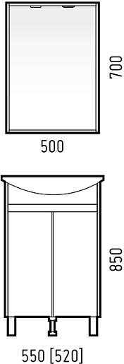 В комплекте: тумба, раковина, зеркало, ножка (3 шт.).