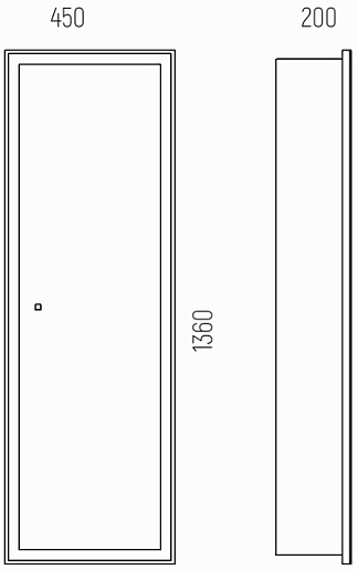 - 1 распашная дверца, 3 внутренние стеклянные полки.