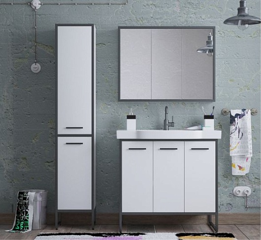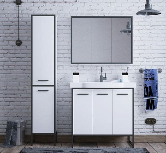 Тумба под раковину Айрон 90, черный/белый