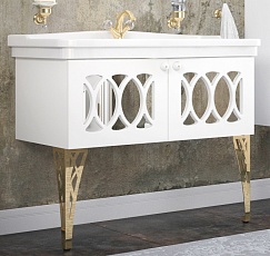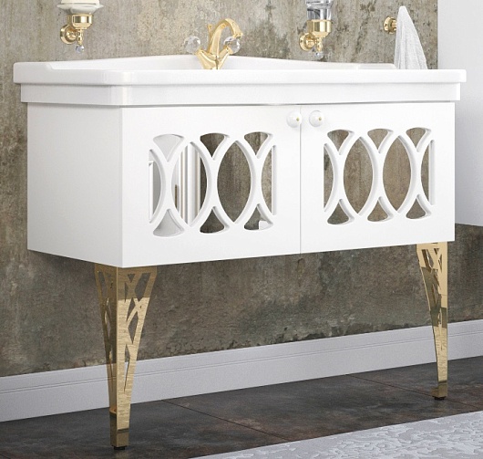 - Тумба под раковину Таормина 85 с распашными фасадами, встроенные доводчики. Изделия покрыты матовой эмалью. Фасады с фрезеровкой и зеркальными вставками.
