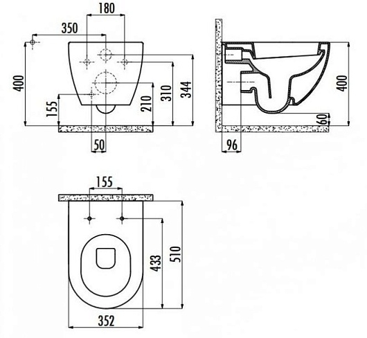 Creavit Унитаз подвесной Free FE322.00400 безободковый с биде и краном