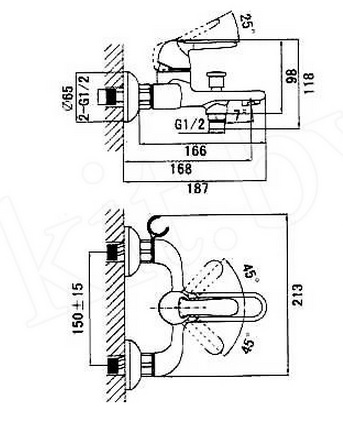 - фиксированный излив 168 мм