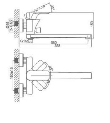 - поворотный длинный излив 330 мм