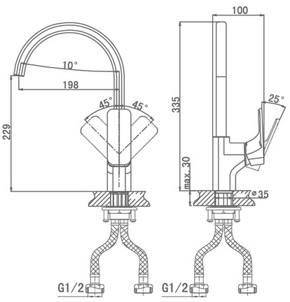 - гибкая подводка G1/2"