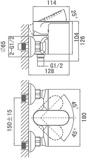 - настенный монтаж на два отверстия