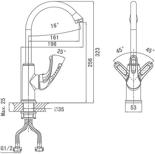 D&K Смеситель "Eucharius Rhein DA1372401" для кухонной мойки