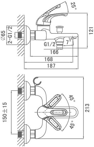 - настенный монтаж на два отверстия