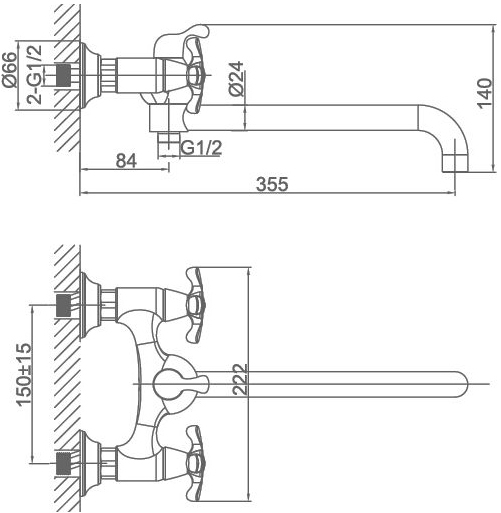 - настенный монтаж на два отверстия
