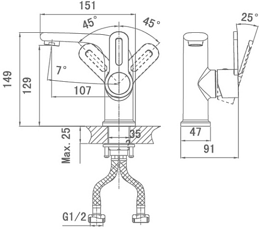 - монтаж на одно отверстие