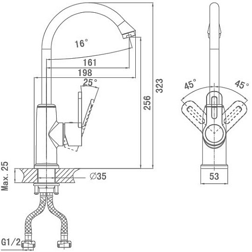 D&K Смеситель "Paulinus Rhein DA1352401" для кухонной мойки