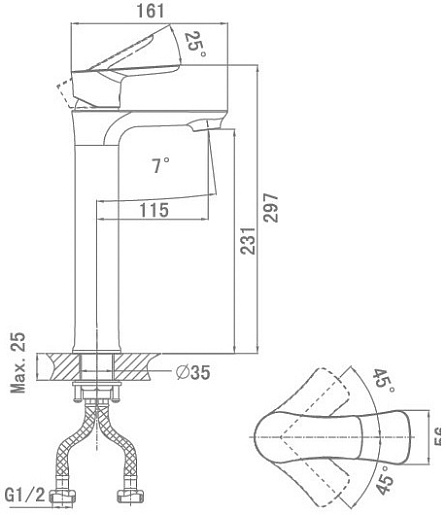 Высота излива, мм: