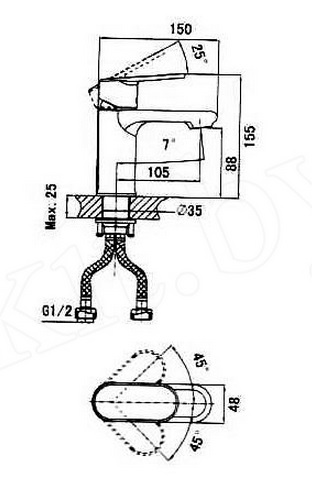 - фиксированный излив 105 мм