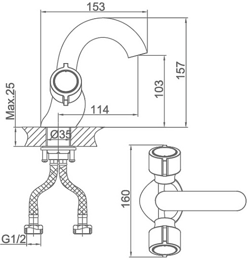 - монтаж на одно отверстие