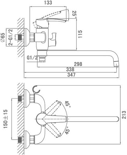 - настенный монтаж на два отверстия