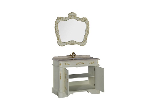 - Тумба с раковиной Болонья 120: раковина, столешница Crema marfil литьевой мрамор, дверца распашная - 2 шт.