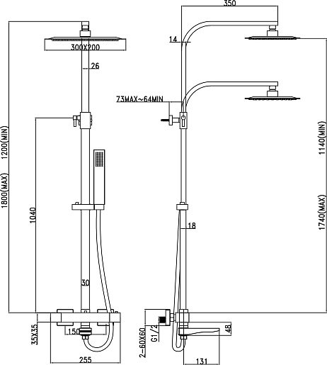 - Размер верхнего душа (ДxШ): 200x300 мм.