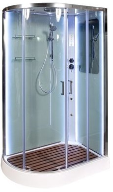 антибактериальная пластиковая вставка (под дерево) в поддон; вертикальная LED-подсветка - управление с сенсорного пульта (с функциями: радио, освещение, принудительная вентиляция); вертикальный гидромассаж - 3 форсунки; принудительная вентиляция; стеклянная крыша с тропическим душем и вентиляцией; зеркало интегрировано в заднюю стенку, благодаря чему исключается вероятность коррозии; две стеклянные полки с ограничителем; латунный смеситель с керамическими картриджами и резьбовыми соединениями; сверхпрочное, закаленное стекло толщиной 6 мм с антикальциевой обработкой; хромированные ручки; монтаж без силикона; резьбовые соединения всех шлангов; усиленный акриловый поддон с дренажными отводами, на металлическом каркасе с регулируемыми по высоте ножками; нескользящее покрытие поддона; бесшумные двойные ролики (верхние и нижние) из нержавеющей стали в пластиковом антикоррозийном кожухе; душевая лейка на штанге с регулировкой по высоте с силиконовыми форсунками; шланг усиленный хромированный с системой ANTI-TWIST (не скручивается), вращение шланга на 360⁰; верхний и ручной душ оснащен системой Easy Clean; сифон с гидрозатвором;