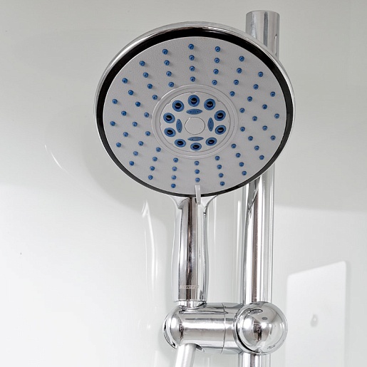 - Душевая штанга с регулировкой лейки по высоте и ручная лейка с силиконовыми форсунками с функцией переключения режимов .